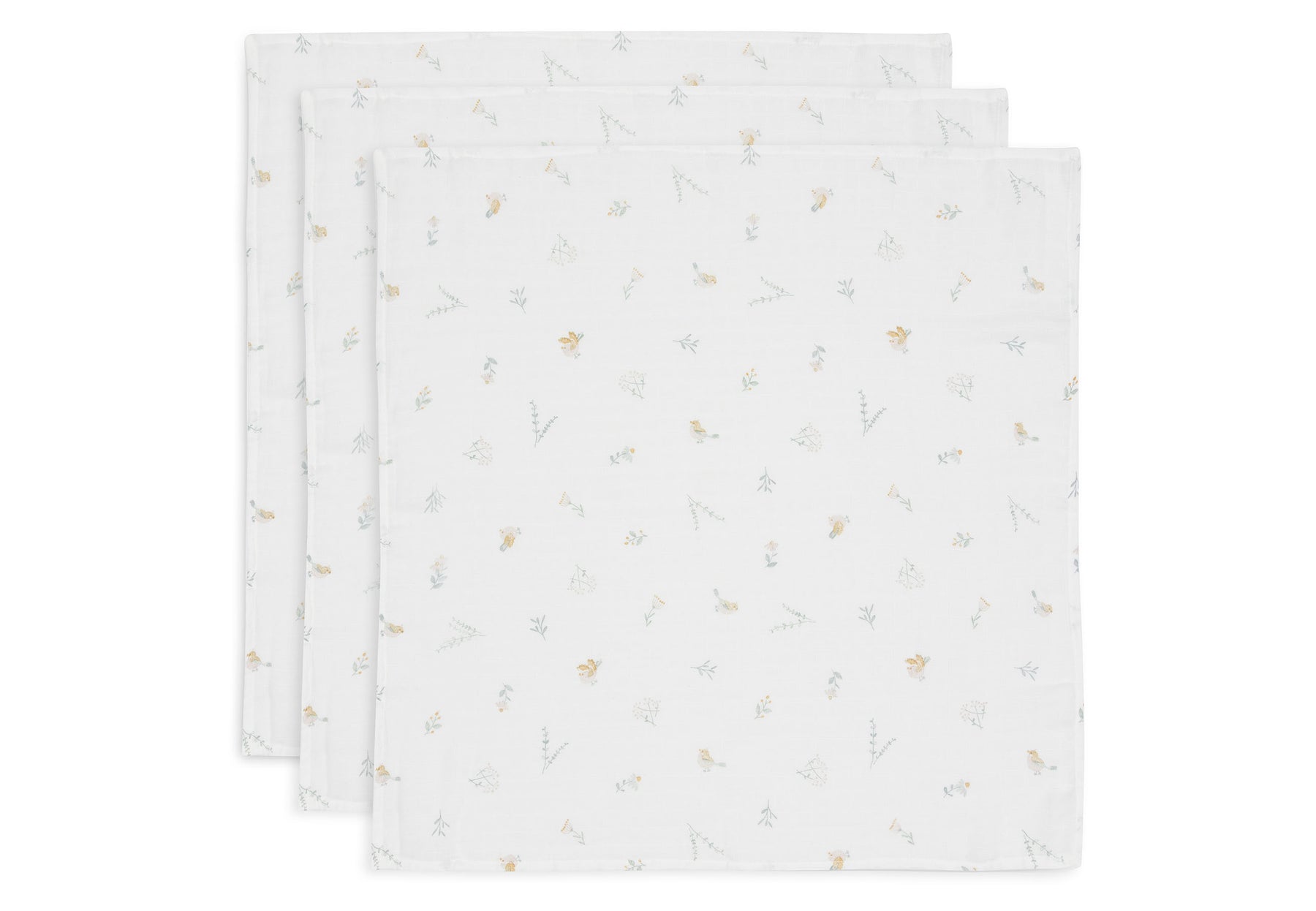 | Hydrofiele doeken zijn onmisbaar voor elke ouder! Of je ze nu gebruikt als handdoek, spuugdoek, onderlegger of kleedje voor onderweg, de mogelijkheden zijn eindeloos. Deze schattige doeken, in Lovely birds thema, zijn heerlijk zacht en perfect voor gevoelige babyhuidjes. Deze 3 pack heeft een prachtig printje van vogeltjes, bloemetjes en takjes en neemt je mee de natuur in. De kleuren Wild Rose, Sea Green en Ash Green passen perfect samen en stralen samen rust en harmonie uit. De achtergrond van deze doek heeft de neutrale kleur Ivory. |