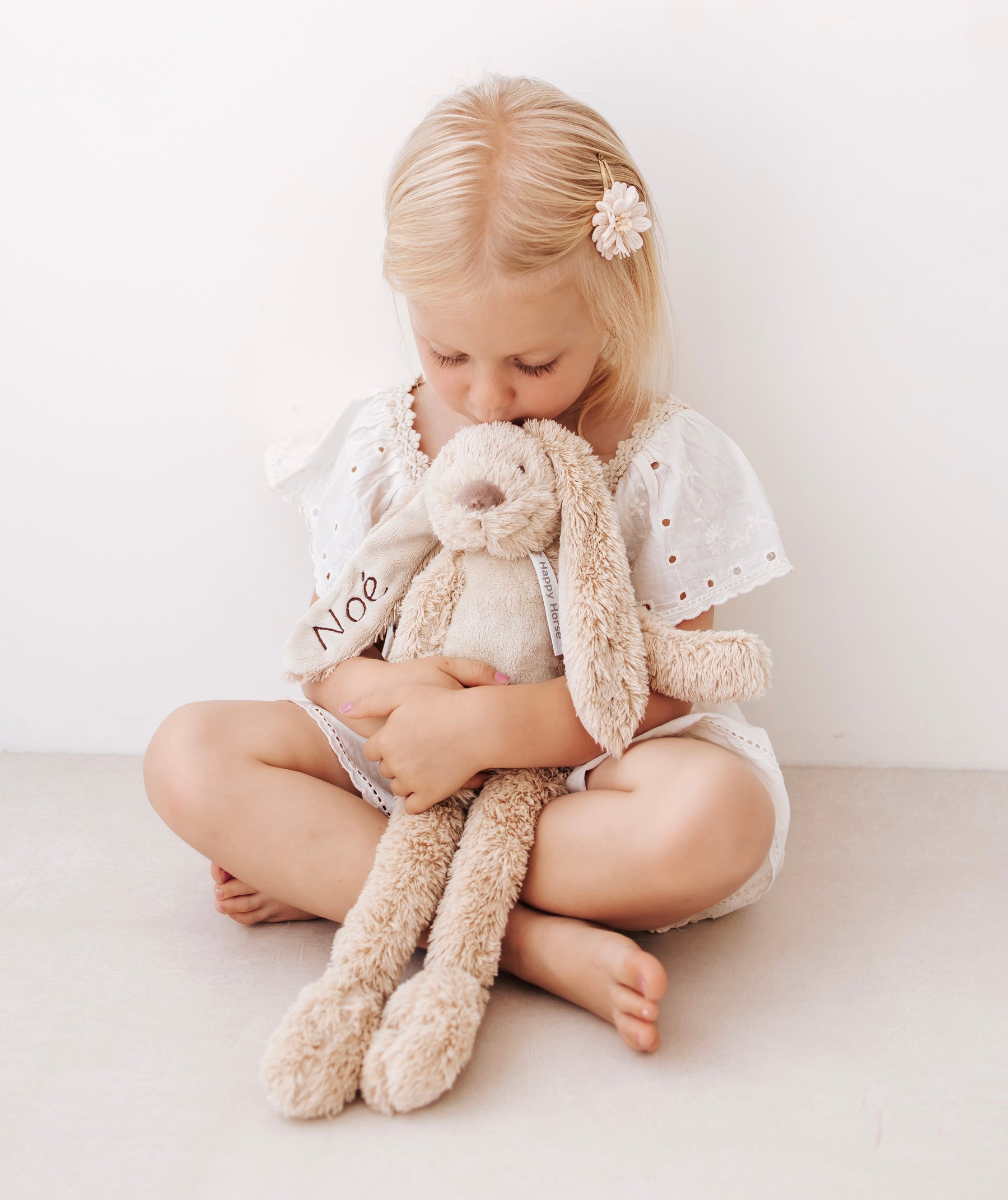 Maak van de populaire Happy Horse Richie een écht uniek vriendje! Dit lieve konijntje van 38 cm wordt speciaal voor jou gepersonaliseerd met de naam van het kindje, prachtig geborduurd op het oortje. |