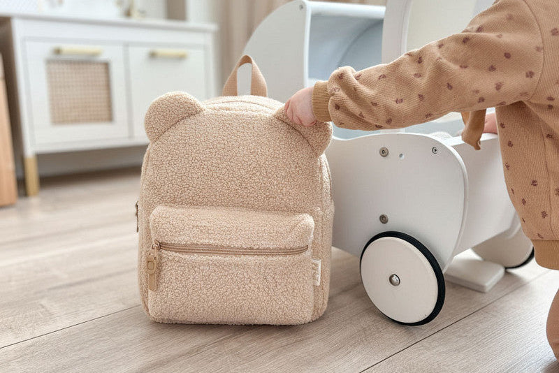 De zachte “Ridge and Row” rugzak van Prêt is stijlvol én praktisch voor dagelijks gebruik. Gemaakt van comfortabele teddystof en afgewerkt met schattige berenoortjes bovenop, valt deze rugzak direct op.